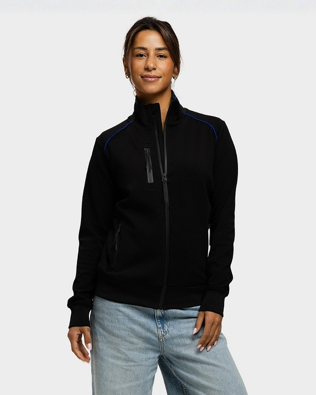 Lemon & Soda Accent Cooldry unisex sweater met rits. Dankzij het antibacteriële, ademende en verkoelende effect een goed basis kledingstuk voor elke bedrijfsoutfit. Door de unieke samenstelling van een biologisch katoenen buitenzijde en gerecycled polyester Cooldry binnenzijde absorbeert het vest transpiratie snel.